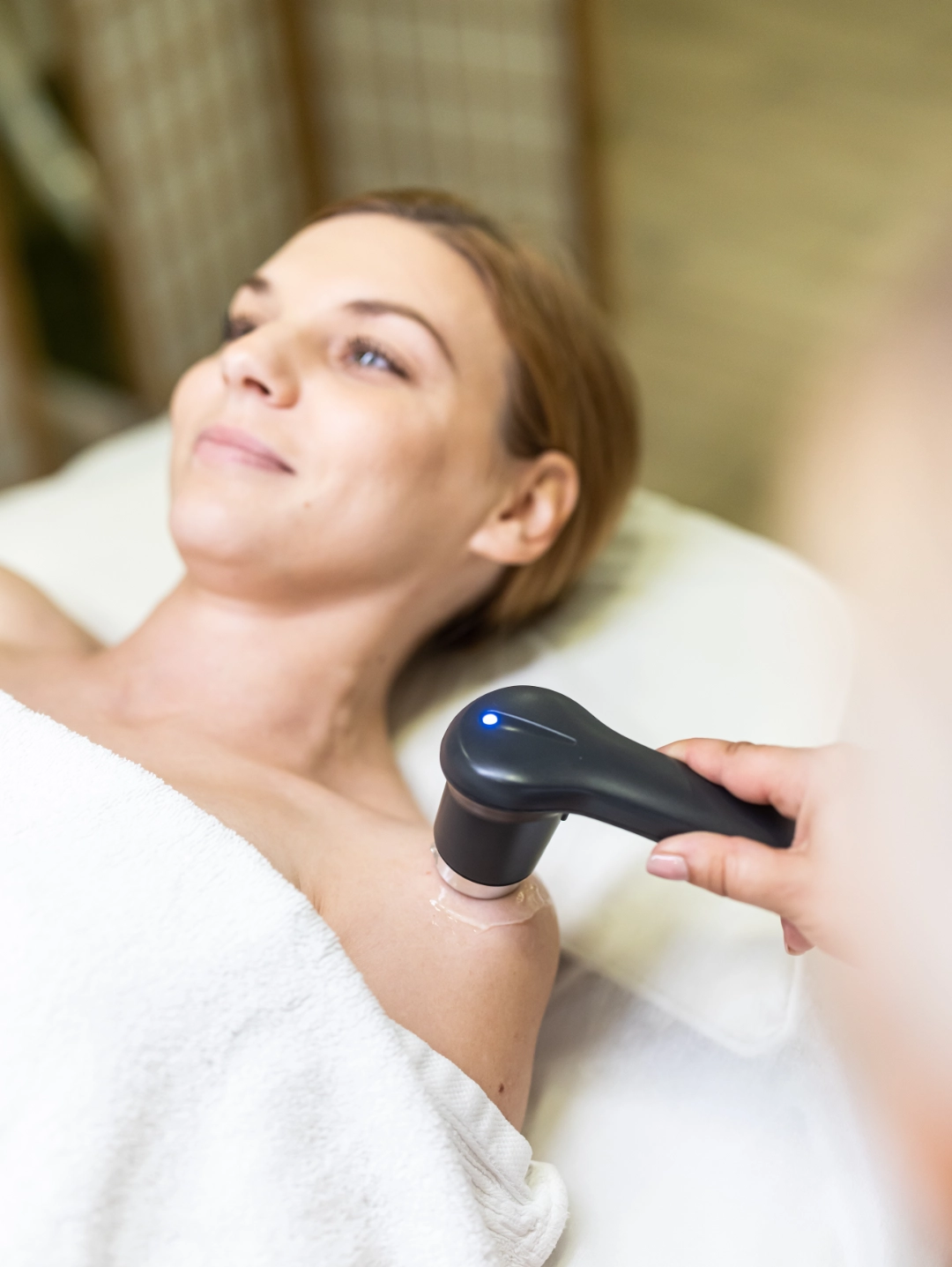 Ultrazvočna terapija je zdravljenje z ultrazvočnim valovanjem visokih frekvenc do 3 Mhz.